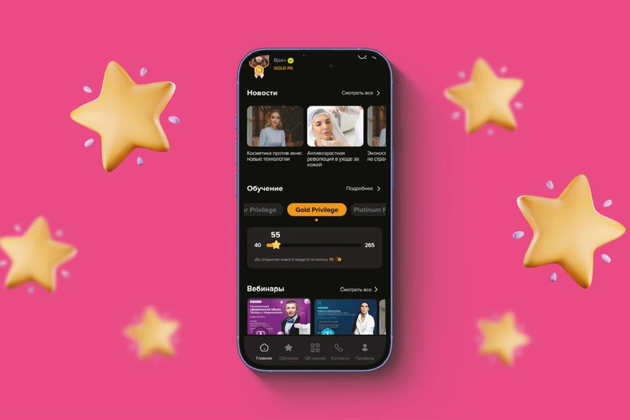 - Программа профессионального развития Merz Privilege, которая делает обучение увлекательным. Врачи переходят от уровня к уровню, выполняют задания разной сложности, подтверждают опыт использования продуктов Merz Aesthetics и получают «звезды».