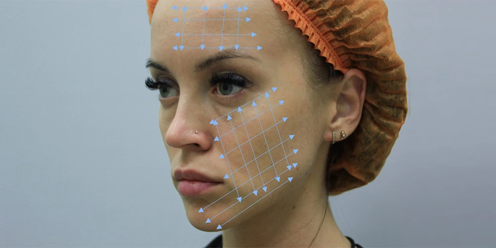 Использование Hyalual Perfoskin Соmplex в области лица (1,2 мм).