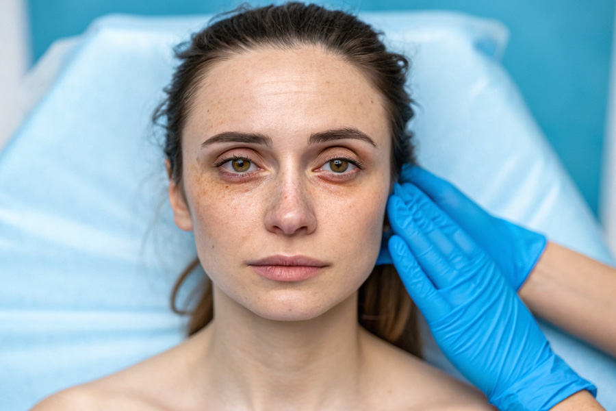 Тонкая относительно остальной кожи лица и несколько прозрачная кожа век плохо маскирует выступающие нижележащие мягкие ткани средней трети лица, включая мощную подкожную сосудистую сеть и круговую мышцу глаза. Это может приводить к потемнению кожи в этой области2, 3.