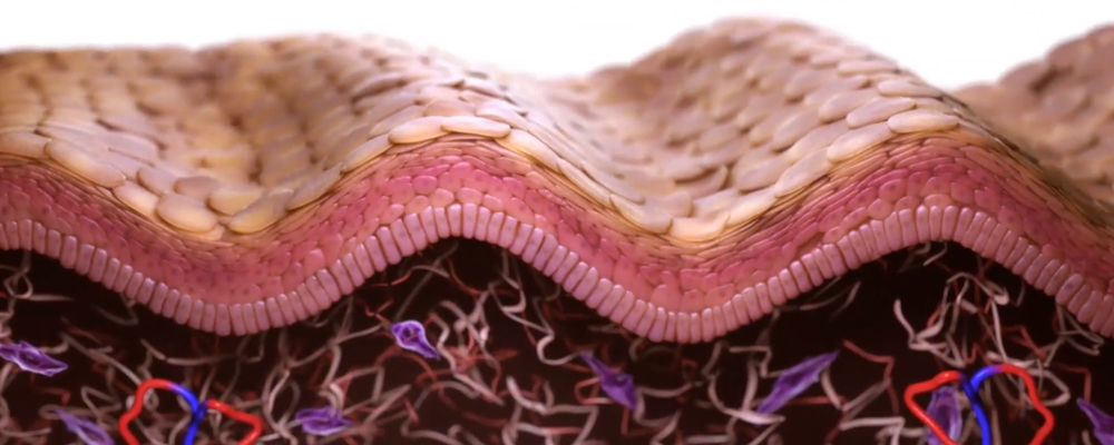 Важным структурным компонентом кожи является внеклеточный матрикс (ВКМ), который состоит из гликозаминогликанов (ГАГ), протеогликанов, коллагеновых волокон и других крупных молекул. Вместе они образуют структуру, которая обеспечивает биохимическую функцию кожи как органа.