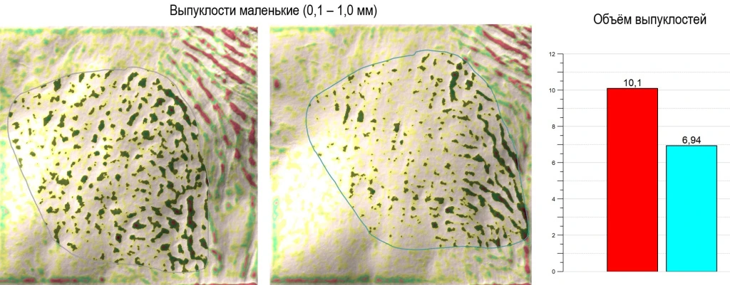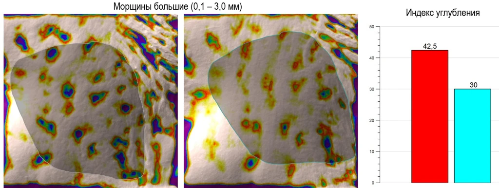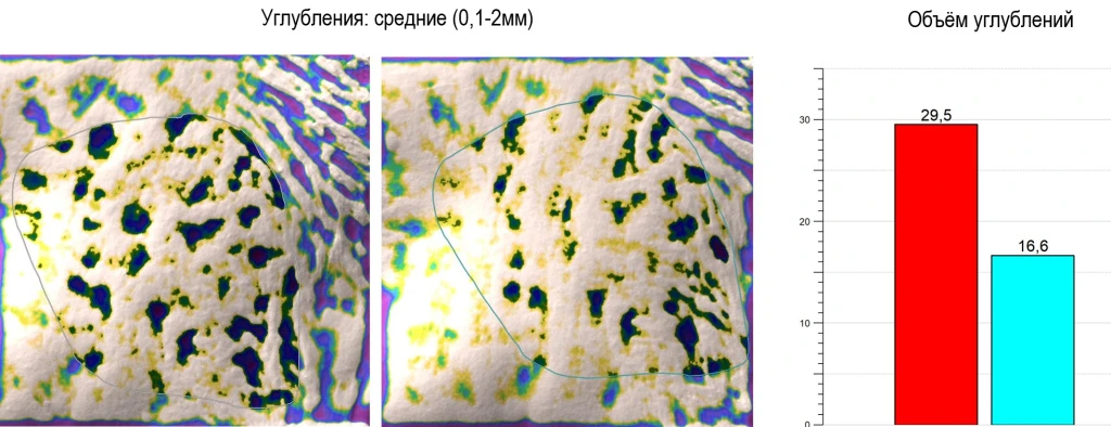 Antera 3D является эффективным инструментом оценки степени дефектов кожи и позволяет в цифрах выразить эффективность сочетанных эстетических процедур. На фото ниже вы можете посмотреть изображения и графики улучшения состояния кожи пациентки.
