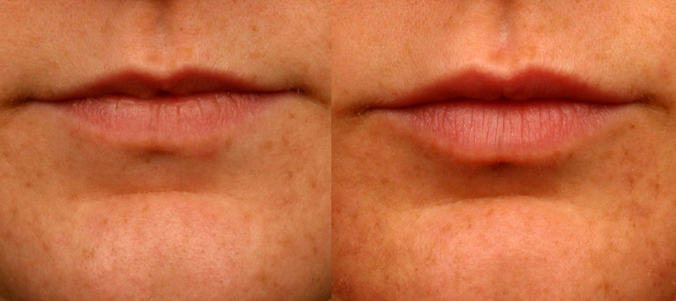 В коррекции губ иногда единственными желаниями пациента могут быть четкость контура, увеличение объема различной степени, коррекция углов рта или только коррекция периорбитальных морщинок и тд. В таком случае избирательно применяем один филлер по приоритетному показанию, имплантируя его подслизисто или внутрикожно на глубину два миллиметра.
