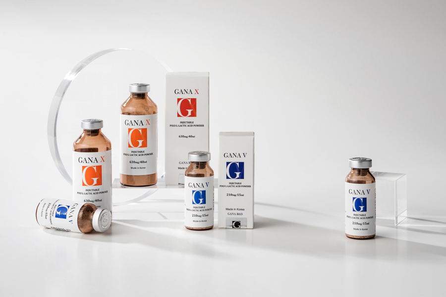 Не так давно в РФ были зарегистрированы еще два медицинских изделия на основе ПМК – GANA V и GANA X. Как и Sculptra, препараты GANA V и GANA X представляют собой лиофилизированный порошок, который состоит из микрочастиц L-изомера ПМК, карбоксиметилцеллюлозы и апирогенного маннитола. Частицы имплантата GANA FILL не имеют острых углов, характерных для Sculptra, что снижает риск неконтролируемого воспаления, и имеют пористую поверхность, что обеспечивает лучшую интеграцию в тканях и фиксацию фибробластов.