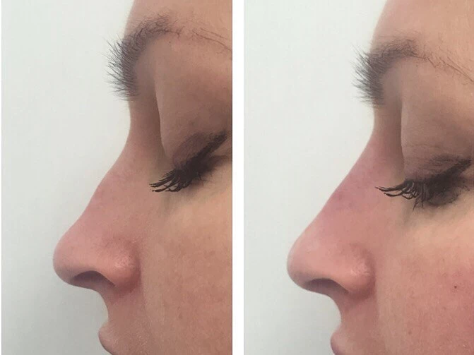 Пациентка 24 лет обратилась с просьбой скорректировать спинку носа, до этого 12 месяцев назад вводился в данную область препарат на основе гиалуроновой кислоты.