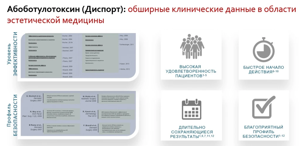 В качестве инструмента для миорелаксации в своей практике я всегда использую абоботулотоксин (Диспорт ®), который позволяет моим пациентам получить более быстрый и длительный результат на фоне выдающейся переносимости, что многократно доказано многочисленными научными исследованиями (ил. 3).