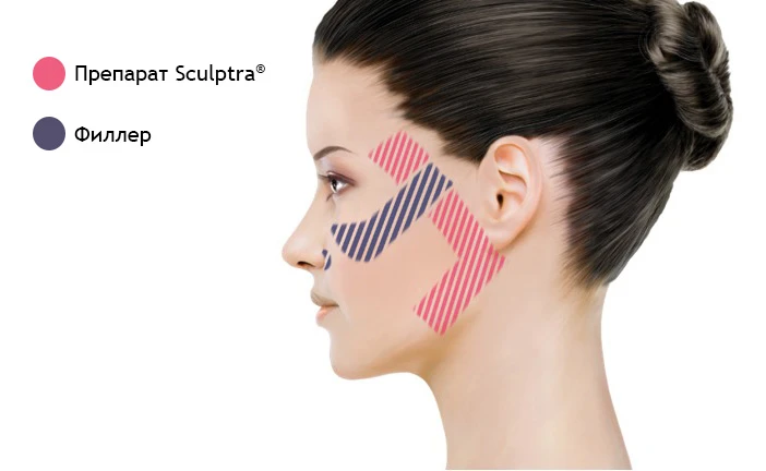 Рассматривать Sculptra® в качестве монопроцедуры можно, однако ее совместное применение с филлерами Restylane® и со скинбустерами Vital® дает более красивые результаты.