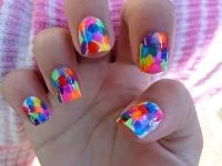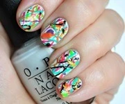 Также не требует снятия старого покрытия. Просто используем несколько ярких оттенков лака и наносим их в произвольном порядке на все ногти, и, конечно, в первую очередь, на места сколов.