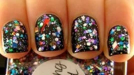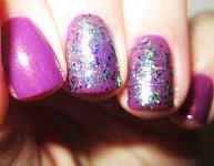Этот вариант экспресс восстановления маникюра, пожалуй, самый простой. Он не требует даже удаления старого покрытия в местах сколов: просто покрываем все ногти лаком с блестками.