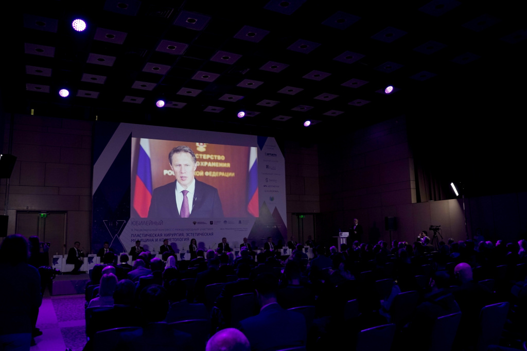 С приветственным видеообращением выступил Министр здравоохранения Российской Федерации М.А. Мурашко. В своём приветственном слове он отметил, что Национальный конгресс стал главным событием года в пластической хирургии. Михаил Альбертович подчеркнул, что насыщенная научная программа мероприятия будет способствовать плодотворному обмену опытом и обсуждению перспектив развития пластической хирургии, эстетической медицины и косметологии, а также улучшению качества и безопасности доступной медицинский помощи».