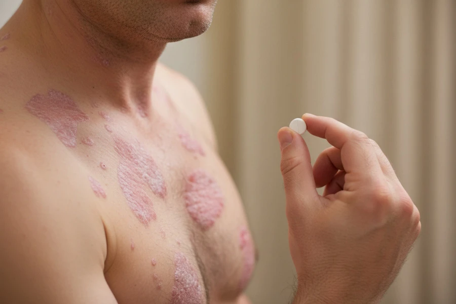 Выраженные улучшения врачи отметили уже на 4-й неделе терапии, они продолжали нарастать до 24-й недели. Исследования также подтвердили все 44 второстепенные конечные точки, в том числе PASI 90, PASI 100 и sPGA 0 по сравнению с плацебо и апремиластом.