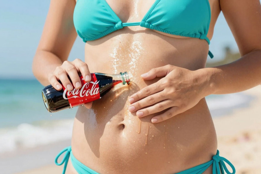 Некоторые потребители используют Coca Cola, чтобы улучшить загар, полагая, что газированный напиток придаст коже карамельный оттенок и ускорит загар во время пребывания на солнце.