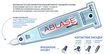 ABLASE — это прибор, который работает на сублимацию (мгновенное испарение) точечных участков кожи, площадью менее одного квадратного миллиметра. За несколько сеансов, один раз в два - четыре месяца, разглаживает кожу лица и тела и делает ее более эластичной (даже в деликатных местах) с заметным омоложением и восстановлением тонуса.