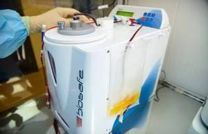 Второй вариант выделения стволовых клеток крови осуществляется с использованием аппарата для сепарации крови в автоматическом режиме (клеточный сепаратор) - Sepax. Выглядит этот процесс так: к пакету с кровью в ламинаре присоединяют стерильный индивидуальный набор, который состоит из двух пакетов (для лейкоцитов и плазмы) и центрифужной камеры. Всю эту конструкцию загружают в аппарат Сепакс, запускают автоматическую программу разделения цельной пуповинной крови на фракции (лейкоцитов, плазмы и эритроцитов). Через 35-40 минут, в зависимости от начального объема пуповинной крови, прибор заканчивает свою работу. На выходе получают пакет с лейкоцитами (среди которых находятся стволовые клетки), пакет с плазмой и пакет с эритроцитами.