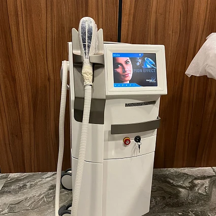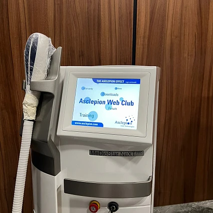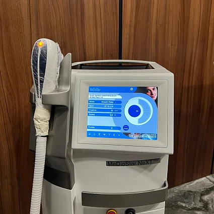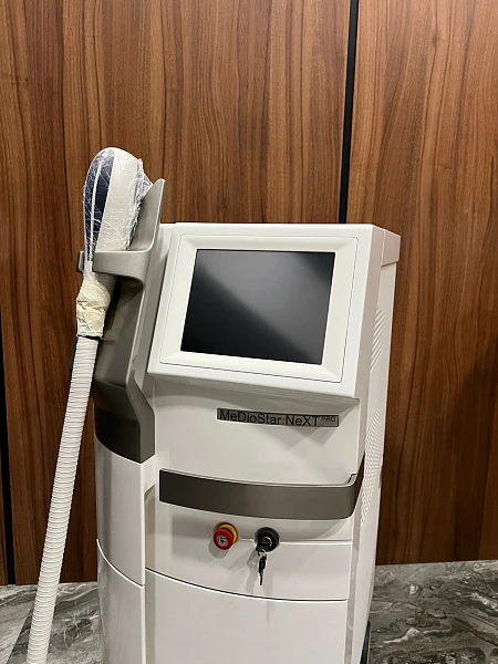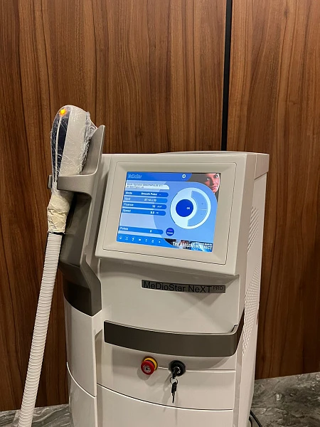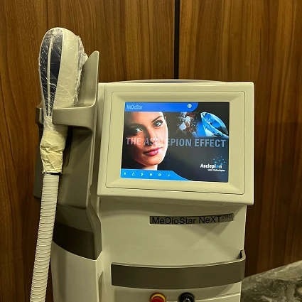MeDioStar NeXT PRO – диодный лазер для использования в сфере эстетической медицины, который позволяет удалять нежелательные волосы на теле и лице на длительный период. Представляет собой современное оборудование для эпиляции и омоложения, комплектующееся набором насадок, позволяющих оперативно и эффективно устранять недостатки. Модель является одной из самых лучших на рынке диодных лазеров.
