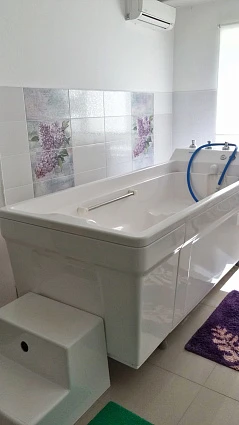 Высокая ступенька с противостоящим покрытием облегчает вход/выход из ванны и обеспечивает комфорт и безопасность в процессе эксплуатации ванны.